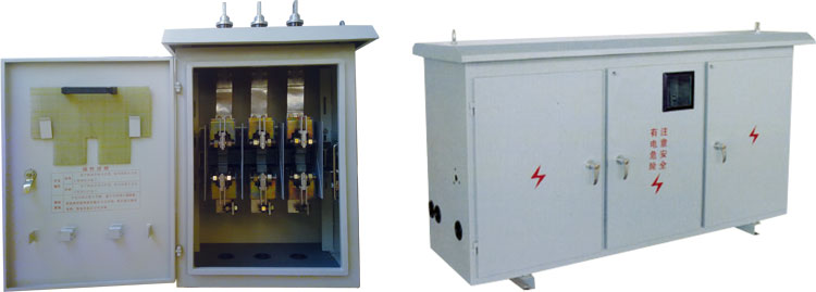 我公司開發試制了BWX-Z系列低壓柱上綜合配電箱。該裝置既能對柱上公變低壓側配電線路進行分配控制和保護,刀熔開關采用HR□系列隔離開關熔斷器組合電器,刀熔開關無需打開箱門操作,就能實現開關的分、合閘。本產品分為帶無功補償裝置和不帶無功補償裝置兩種型式。可實現電能計量、測量電流、電壓、功率因數等功能,對柱上公變的出線運行狀況進行實時監測,為供電部門調查運行狀況,制定最經濟、安全的運行方案及設備的增容等提供一套 完整的數據,該裝置的開發成功,改變了原有產品懸掛式配電箱的多種不足,集多種功能于一體,安裝、操作、檢修方便,降低了電力工人的勞動強度,又整潔城鎮市容,有利于城鎮公變及農村配變的標準化、規范化管理。
